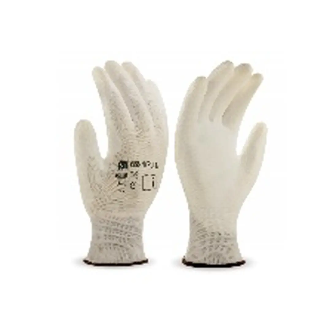 GUANTE DE POLIESTER BLANCO CON POLIURETANO BLANCO EN PALMA TALLA S,M,L Y XL PAQUETE CON 12 PARES